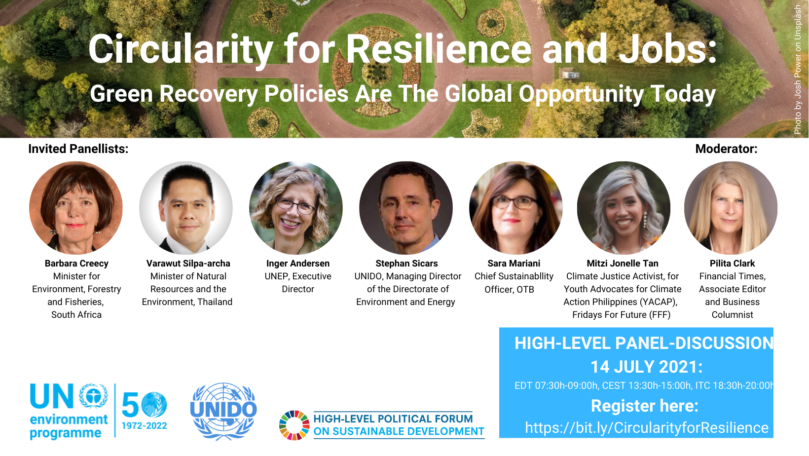 Maelys NIZAN Created an Event 4 years ago Circularity for Resilience and Jobs - Green Recovery Policies Are The Global Opportunity Today 14 JUL 2021 Online Register United Nations Environment Programme(UNEP) United Nations Industrial Development Organization(UNIDO) An online UNEP-UNIDO panel discussion with leaders from key countries and international institutions. The COVID-19 crises is linked with nature loss and shrinking habitats. And it comes on top of the triple crises we already face: our climate is in serious trouble, nature and biodiversity are in accelerating decline, and humanity’s toxic trail of pollution and waste is growing. Our unsustainable consumption and production is the core driver of these crises. Recovery policies implemented today offer the opportunity to restore, reset and rebalance our most important relationship with nature by addressing the causes of unsustainable consumption and production. A carefully managed transition to circularity will be critical to deliver on the SDGs, the Paris Agreement, and the biodiversity and pollution agendas. It will be essential to recover from the pandemic and to lift people out of poverty, while staying within planetary boundaries. The event will discuss the alignment of current recovery packages with SDG 12 goals and explore good examples opportunities. The event aims to conclude with the most important global steps to scale up circular economy for a sustainable future. Our panel of international leaders and experts will discuss the questions that matter, like: What are the biggest opportunities we are currently missing for an inclusive, green recovery? Where are we right now, are we on / off track and what more needs to be done? In which sectors and value chains will we generate the biggest impact for resilience, jobs, and a pollution-free planet? Where are the biggest gains to be had, and what are the leverage points? What are the barriers and incentives that need to be addressed? From a policy and finance perspective, what do we need to do differently? What incentives and economic policies are needed? And how can we make this happen? Invited Panelists Ms. Inger Andersen, UNEP Executive Director Ms. Barbara Creecy, Minister for Environment, Forestry and Fisheries, South Africa Mr. Varawut Silpa-archa, Minister of Natural Resources and the Environment, Thailand Ms. Sara Mariani, Chief Sustainability Officer, OTB Mr. Stephan Sicars, UNIDO, Managing Director of the Directorate of Environment and Energy Ms. Mitzi Jonelle Tan, Climate Justice Activist, for Youth Advocates for Climate Action Philippines (YACAP), the Fridays For Future (FFF) Moderated by: Pilita Clark, Financial Times, Associate Editor and Business Columnist Tags circularity green jobs climate resilience Circular Economy Share Share on Facebook Share on Twitter LinkedIn Add this Repost 2 likes 0 comments