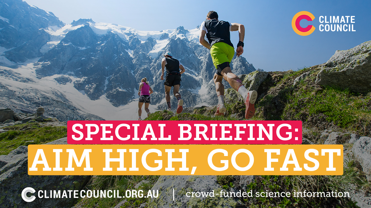 Green Growth Knowledge Partnership Created an Event 4 years ago Climate Council - Special Briefing: Aim High, Go Fast 27 MAY 2021 Register Climate Council On 27 May 2021, the Climate Council is hosting a webinar on its latest report, "Aim High, Go Fast: Why Emissions Need to Plummet this Decade". Hosted by Acting Climate Council CEO Dr Martin Rice, we'll be joined by Climate Councillors Prof. Will Steffen and Prof. Lesley Hughes, lead authors of the report, as well as the Head of Strategic Communications Dinah Arndt. During the webinar it will unpack the science behind the report and dig into the extensive communications research that went into telling this important story. Share Share on Facebook Share on Twitter LinkedIn Add this Repost 1 like 0 comments