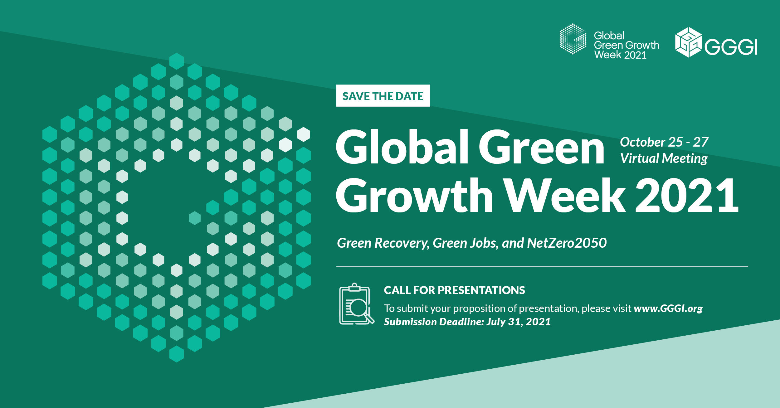 Gayeon Shin Created an Event 4 years ago Global Green Growth Week 2021 25 OCT 2021 - 27 OCT 2021 Register Global Green Growth Institute(GGGI) Global Green Growth Week 2021 (GGGWeek2021) will feature high-level panel discussions, keynote speeches, interactive sessions and debates that will highlight examples of solutions and best practices to green COVID-19 recovery, develop Green New Deals to accelerate the implementation of the Paris Agreement, engage with global green growth leaders and practitioners, forge partnerships, and provide participants with learning and sharing opportunities across a range of sectors and topics to advance the global efforts to build back better. Date: October 25-27, 2021 Time: Various GGGWeek2021 sessions will be held at a time convenient for different time zones. Venue: Virtual (Zoom) Learn more about the provisional program here. Tags green recovery green jobs net zero Share Share on Facebook Share on Twitter LinkedIn Add this Repost 1 like 0 comments