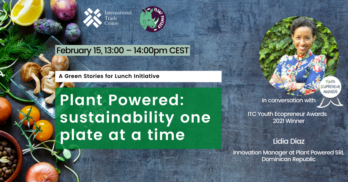 Cherika Hardjakusumah Created an Event 3 years ago Green Stories for Lunch 15 FEB 2022 International Trade Centre(ITC) We are excited to invite you to the first ITC's Green Stories for Lunch in 2022! This time on the menu: Lidia Diaz, one of the winners of the ITC Youth Ecopreneur Awards, and founder of Plant Powered SRL. Together with Lidia we will explore the world of sustainable eating, the environmental impact of our eating habits, and how political action starts with your plate. You don’t have anything plant yet? So, lettuce meet (sorry, vegan puns are just tofunny). 15 February, 2022 1-2pm Register in advance for this webinar: https://intracen.zoom.us/webinar/register/WN_GbRyutdcRT25Ds-972MQCg Don’t forget to bring your vegan lunch box (and/or your favourite vegan pun)! Share Share on Facebook Share on Twitter LinkedIn Add this Repost 2 likes 2 comments
