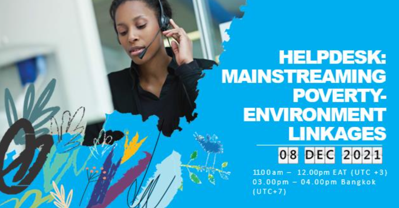 Cherryl ANDRE DE LA PORTE Created an Event 4 years ago HELPDESK: mainstreaming poverty-environment linkages 8 DEC 2021 Register Poverty-Environment Action UNEP-UNDP The Poverty-Environment Action team will be presenting our Helpdesk: a one-stop point of contact that provides stakeholders with centralized information services on how to mainstream poverty-environment objectives into policy, budgeting, programming and investments. We will present the technical advisory, knowledge management, resource mobilization as well as partnerships services available. Wednesday 8 December, from 9-10 am in Geneva (UTC+1) / 11am-12pm in Nairobi (UTC+3) Tags Poverty Environment Mainstreaming Share Share on Facebook Share on Twitter LinkedIn Add this Repost 1 like 0 comments