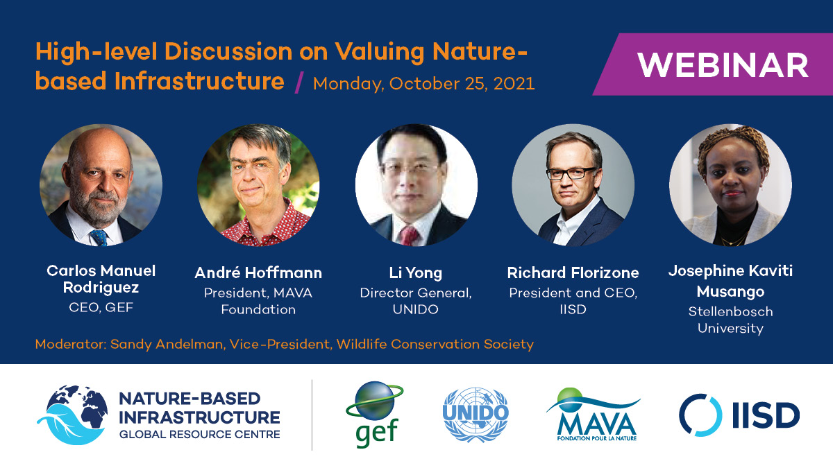 Sally Millett Created an Event 4 years ago A High-Level Virtual Discussion on Valuing Nature-Based Infrastructure 25 OCT 2021 Online Register International Institute for Sustainable Development(IISD) Infrastructure provides essential services worldwide that communities rely on. But how do we ensure that new infrastructure is cost effective, environmentally friendly, and resilient to changing climates? The answer lies in nature. Building with nature offers us a more sustainable alternative to engineered or “grey” infrastructure. Its regenerative characteristics make it more efficient and less expensive to manage and maintain—it is much less carbon-intensive, it can help communities adapt to climate change, and it provides a wide range of additional benefits, from job creation to improved well-being for citizens. In sum, nature-based infrastructure can provide valuable ecosystem services and adaptation benefits, all while supplying public services that generate sustainable patterns of development. Over the longer term, it offers long-term value for money—so why is the value of forests, mangroves, wetlands, grasslands, agricultural lands, trees, and green spaces so often overlooked? The reason nature-based infrastructure is not being scaled up enough to fulfill its potential is because our knowledge of its performance, predictability, and financial viability has—until now—been limited. The Global Environment Facility (GEF) and the MAVA Foundation are partnering with the United Nations Industrial Development Organization (UNIDO) and the International Institute for Sustainable Development (IISD) to address this challenge with the launch of the Nature-Based Infrastructure (NBI) Global Resource Centre—a global hub for nature-based infrastructure. The NBI Global Resource Centre aims to overcome the evidence gap that investors, project developers, and other key stakeholders face when they evaluate whether to invest in nature. This global event will launch the NBI Global Resource Centre and offer a unique high-level perspective from leaders in the field on how to scale up nature-based infrastructure and make the most of the innovative services offered by the new platform. Speakers Carlos Manuel Rodriguez, CEO, Global Environment Facility (GEF) André Hoffmann, President, MAVA Foundation Li Yong, Director General, United Nations Industrial Development Organization (UNIDO) Richard Florizone, President and CEO, International Institute for Sustainable Development (IISD) Professor Josephine Kaviti Musango, Stellenbosch University Moderator: Dr. Sandy Andelman, Vice President, Conservation Strategy & Partnerships at Wildlife Conservation Society Share Share on Facebook Share on Twitter LinkedIn Add this Repost 1 like 0 comments