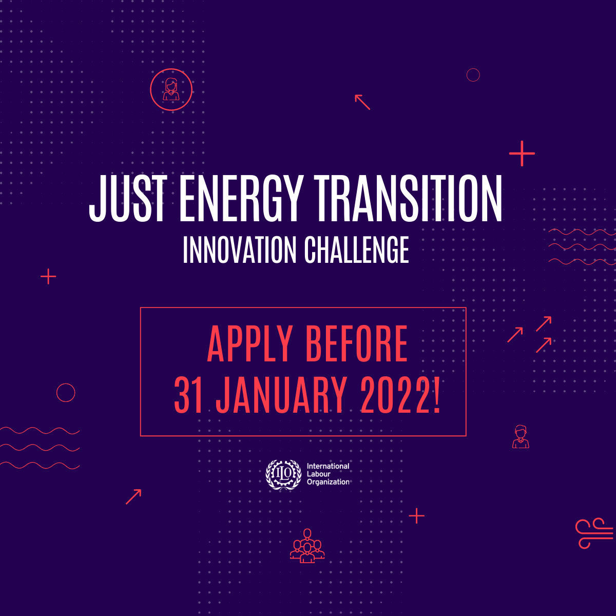 Mette Lund Created an Event 3 years ago Just Energy Transition - Innovation Challenge 15 DEC 2021 - 31 JAN 2022 Register International Labour Organisation(ILO) Launching now: The ILO Just Energy Transition Innovation Challenge The energy sector powers economies and sustains jobs. It also generates approximately two-thirds of global greenhouse gas emissions. If the Paris Agreement goals are to be met, the energy transition needs to accelerate and reach a tremendous scale. There will be substantive employment and social impacts that need to be anticipated and planned for. Overall, it is estimated that the energy transition will deliver net job gains. The shift to sustainable energy requires innovative solutions and breaking with business as usual while ensuring that the transition is just and leaving no one behind. While innovation is needed, scalable solutions are hard to identify and do not always reach the people who may benefit most. The ILO is dedicated to finding and accelerating such innovations. Therefore, the ILO is now launching the Just Energy Transition Innovation Challenge. The challenge will identify, enhance, test, and disseminate high-potential policy ideas and solutions that promote a just transition for all, breaking from business-as-usual. The ILO will select 3 winners amongst the proposals and solutions submitted. All 3 winners will benefit from technical assistance equivalent to the value up to 50.000 USD. They will be linked up with experts through ILO’s Just Transition Innovation Network and gain global visibility allowing them to present their innovative ideas to potential partners and the public. For more information, deadlines, and eligibility criteria’s go to: climateaction4jobs.org/innovation-challenge #JETChallenge Tags just transition innovation; energy; policy innovation; #BuildBackBetter challenge call; Share Share on Facebook Share on Twitter LinkedIn Add this Repost 1 like 0 comments