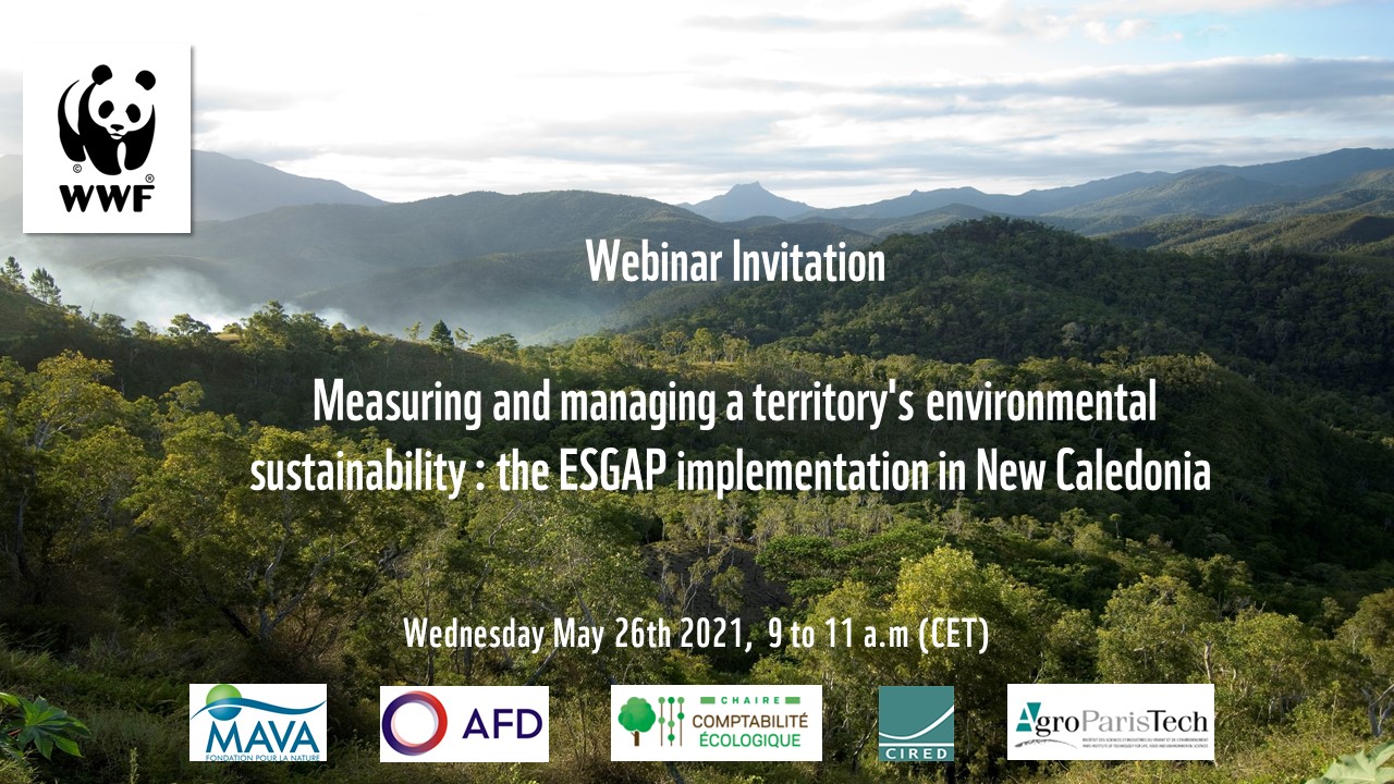Alizee Masson Created an Event 4 years ago Measuring and managing a territory's environmental sustainability: the ESGAP implementation in New Caledonia 26 MAY 2021 Register WWF France In 2020, WWF-France, the French Development Agency (AFD), and the Ecological Accounting Chair (AgroParisTech and Paris Dauphine University) conducted a collaborative study to implement the ESGAP dashboard and composite indicators SES and SESP in New Caledonia (French overseas territory). In order to disseminate these results and recommendations of this work, but also to discuss future perspectives for the ESGAP model, WWF-France will organize a special French - English* webinar on May 26th, 9h-11h (CET) Please find the program below. *As most interventions will be in French, interpretation service will be available for non-French speaking attendees. PROGRAM 9h - 9h10 Introduction - Véronique Andrieux - CEO - WWF-France 9h10 - 9h25 ESGAP Presentation - Oskar Lecuyer - Economist - Agence Française de Développement 9h25 - 9h50 Methodology and results for the pilot project in New Caledonia: Harold Levrel, Researcher, Professor of ecological economics & Adrien Comte, Postdoctoral research fellow - CIRED / AgroParisTech / Ecological Accounting Chair 9h50 - 10h10 Drawing the path to sustainability in New Caledonia - Liking ESGAP with the local advocacy strategy - Alizée Bonnet - Ecological Transition Officer - WWF-France 10h10 - 10h30 ESGAP and the strong sustainability approach at a national level - Ciprian Ionescu - Head of Natural Capital - WWF-France 10h30 - 10h50 The “state of the environment" report in France - Irénée Joassard - Head of the state of the environment office - Commissariat Général au Développement Durable / Ecological Transition Ministry 10h50 - 11h Conclusion - Paul Ekins - Professor of resources and environmental policy, Director of UCL Institute for Sustainable Resources - University College of London Tags Natural Capital ESGAP New Caledonia Strong Sustainability WWF France AFD Ecological Accounting Chair Share Share on Facebook Share on Twitter LinkedIn Add this Repost 1 like 0 comments