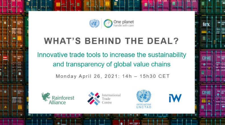 Green Growth Knowledge Partnership Created an Event 4 years ago UNCTAD, One Planet Network Webinar - What’s behind the deal? Innovative trade tools to increase the sustainability and transparency of global value chains 26 APR 2021 Register UNCTAD One Planet Network On 26 April 2021 at 12:00 - 13:30 CET, UNCTAD and One Planet Network are holding a webinar - "What’s behind the deal? Innovative trade tools to increase the sustainability and transparency of global value chains". In 2019, the global trade value of goods exported throughout the world amounted to approximately USD19 trillion. In comparison, this figure stood at around USD6.45 trillion in 2000. While the COVID-19 pandemic has caused a steep downturn in global trade, signs point towards a recovery which will push these levels back near or beyond where they stood in 2019. The discussion in this webinar aims to explore the changing landscape of trade over the past decades and what this means both for people and the planet. Experts from international organisations, civil society, and research institutes will explore a number of trade tools which can thrust sustainability into trade agreements, and in doing so provide ripple effects outwards towards both the production and consumption ends of various global value chains. Tags green recovery Share Share on Facebook Share on Twitter LinkedIn Add this Repost 0 likes 0 comments
